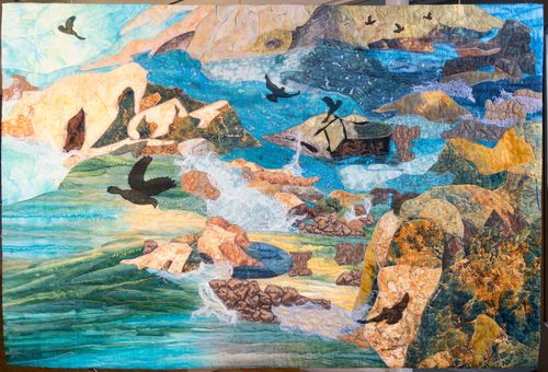 The Fiber and Stitch Art Collective is a 30-member group of Central Virginia artists who work in a variety of textile and quilt media. The collective sent out a challenge for their members with the title of “Rock, Pebble, and Stone.” All the artists were tasked with using fabric, fiber, and stitch to create a work of art depicting the qualities of rock, pebble, and stone. The artists were given the freedom to focus on different aspects of the object including its hardness, texture, color, luster, shape, and size. This is a selection of 24 pieces from the full collection which offer a unique look into nature and the rock formations around us.