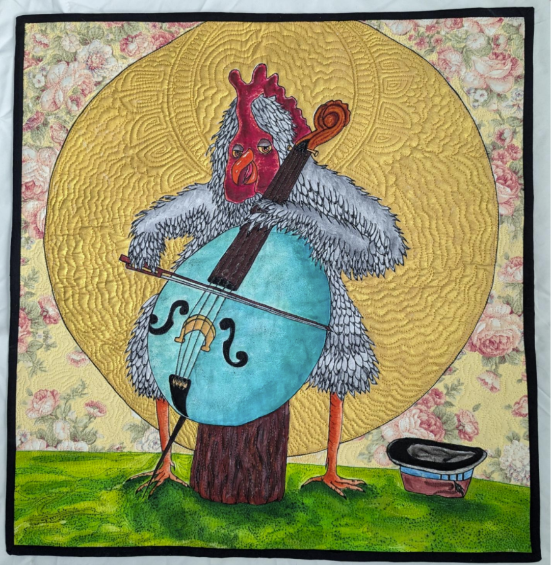 When the world feels heavy, a little laughter can be a gift. Chickens Impossible invites you to step into a whimsical world where chickens ice skate, water ski, and even get married—all dressed for the occasion! Fiber artist Rosanna Lynne Welter transforms simple fabric into joyful, textured scenes that celebrate imagination and resilience. Each piece, hand-painted and stitched with care, reminds us that joy and creativity can rise even in dark times.